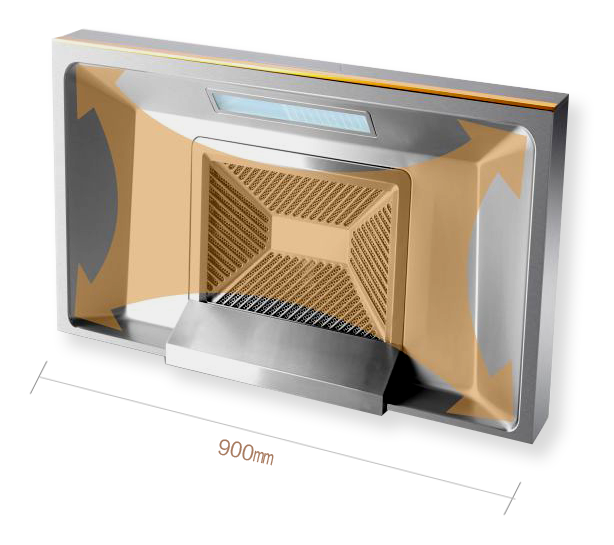 全腔900毫米控煙區比普通煙腔更寬更深,