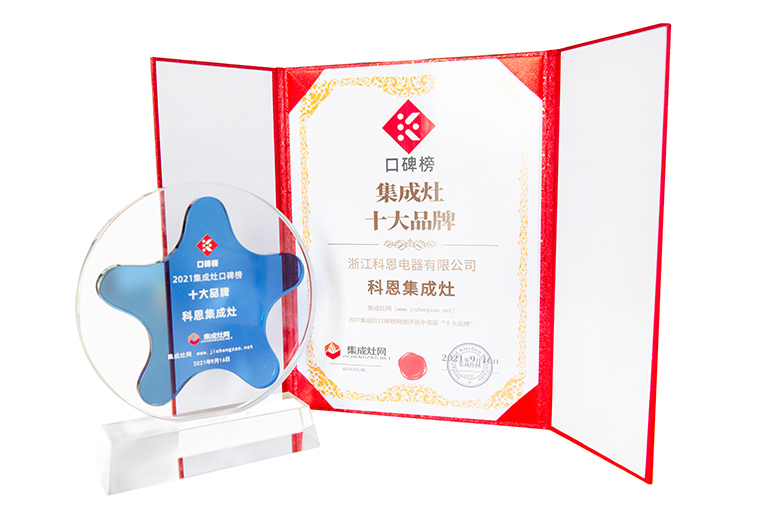 以優質產品打造品牌,以開拓精神推動進步,科恩集成灶在行業占據著舉足輕重的地位,成為行業的佼佼者,榮譽只是社會對科恩集成灶這個階段發展的認可,多次獲獎就證明科恩集成灶始終走在行業的前端!是肯定、是信賴,亦是專業的肯定,2021年9月,科恩集成灶一月內斬獲四大行業/協會“十大品牌”認證,實力由此可見!