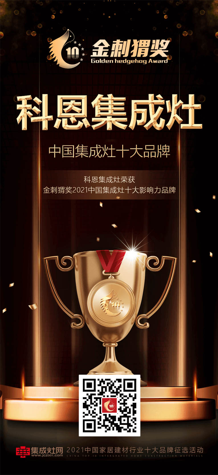 由中國建材家居行業領軍權威專業平臺——滕王網絡傳媒,聯合二十四大熱門主流家居建材品類全力打造的第三屆“金刺猬獎”中國家居建材行業十大品牌征選活動圓滿落幕!秉承公平公正原則,從專業、品質、體驗、創新、口碑等多個維度進行評審,挖掘出在品牌價值、品牌影響力、智能創新及消費者口碑等方面表現卓越的行業品牌,經過公開、透明的真實業務數據檢驗,最終榜單正式揭曉,科恩集成灶榮膺“金刺猬獎2021中國集成灶十大影響力品牌”!