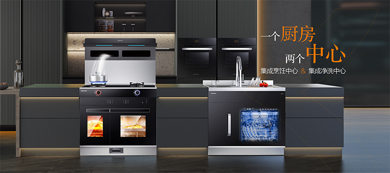 科恩S400蒸烤消一體集成灶顏值與性能兼具備,表里如一,煙機、灶具、消毒柜、蒸箱、烤箱集多種功能于一身,更智能、更集成、更合理的空間搭配,真正實現集成化廚房。