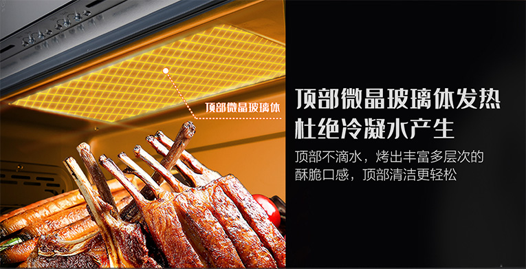 烤箱模式采用200℃高溫烤技術,頂部微晶玻璃體發熱,精準控溫,每一秒都精準控制,保證了食材的受熱均勻,烤出豐富多層次的酥脆口感。