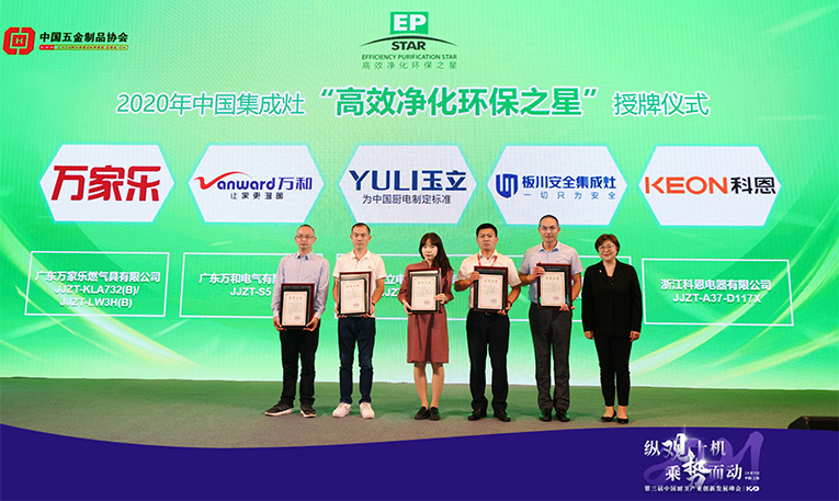科恩D117X集成灶在眾多品牌中脫穎而出,斬獲由中國五金制品協會頒發的2020年中國集成灶“高效凈化環保之星”。