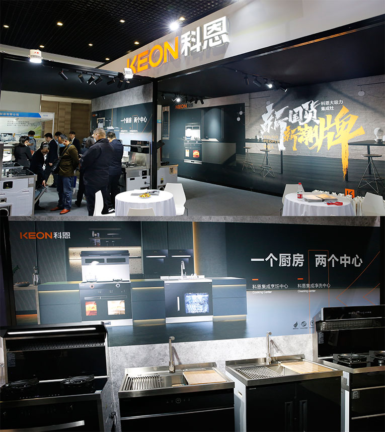 集成灶十大品牌、廚電行業(yè)十大品牌科恩集成灶半敞開(kāi)式展位更顯非凡氣度,“新國(guó)貨、新潮牌”時(shí)尚氛圍更是吸睛無(wú)數(shù),通過(guò)零距離體驗(yàn)產(chǎn)品,感受科恩產(chǎn)品帶來(lái)的樂(lè)享智慧廚房體驗(yàn)。作為嵊州集成灶軍團(tuán)主力軍,攜“一個(gè)廚房,兩個(gè)中心”集成烹飪中心S系列集成灶與集成凈洗中心X系列集成水槽等多款凝聚匠心與智能之作重磅亮相。