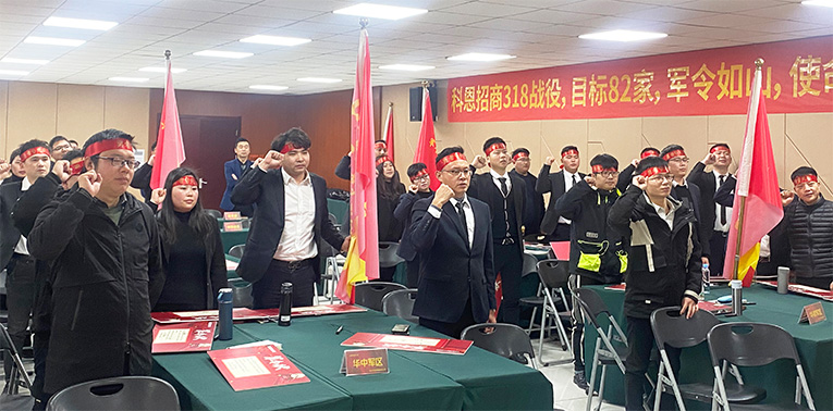 總指揮錢(qián)昌敏帶領(lǐng)公司各領(lǐng)導(dǎo)、各戰(zhàn)區(qū)作動(dòng)員講話,并制定了本次招商峰會(huì)的戰(zhàn)略方向和執(zhí)行策略,提出作戰(zhàn)目標(biāo),希望每位科恩人能夠以百分百的狀態(tài)投入工作,以堅(jiān)持不懈的精神砥礪前行??贫骷稍钤谌珖?guó)擁有近3000家專(zhuān)賣(mài)店,相信在大家的不懈奮斗下,將全力沖刺2022!