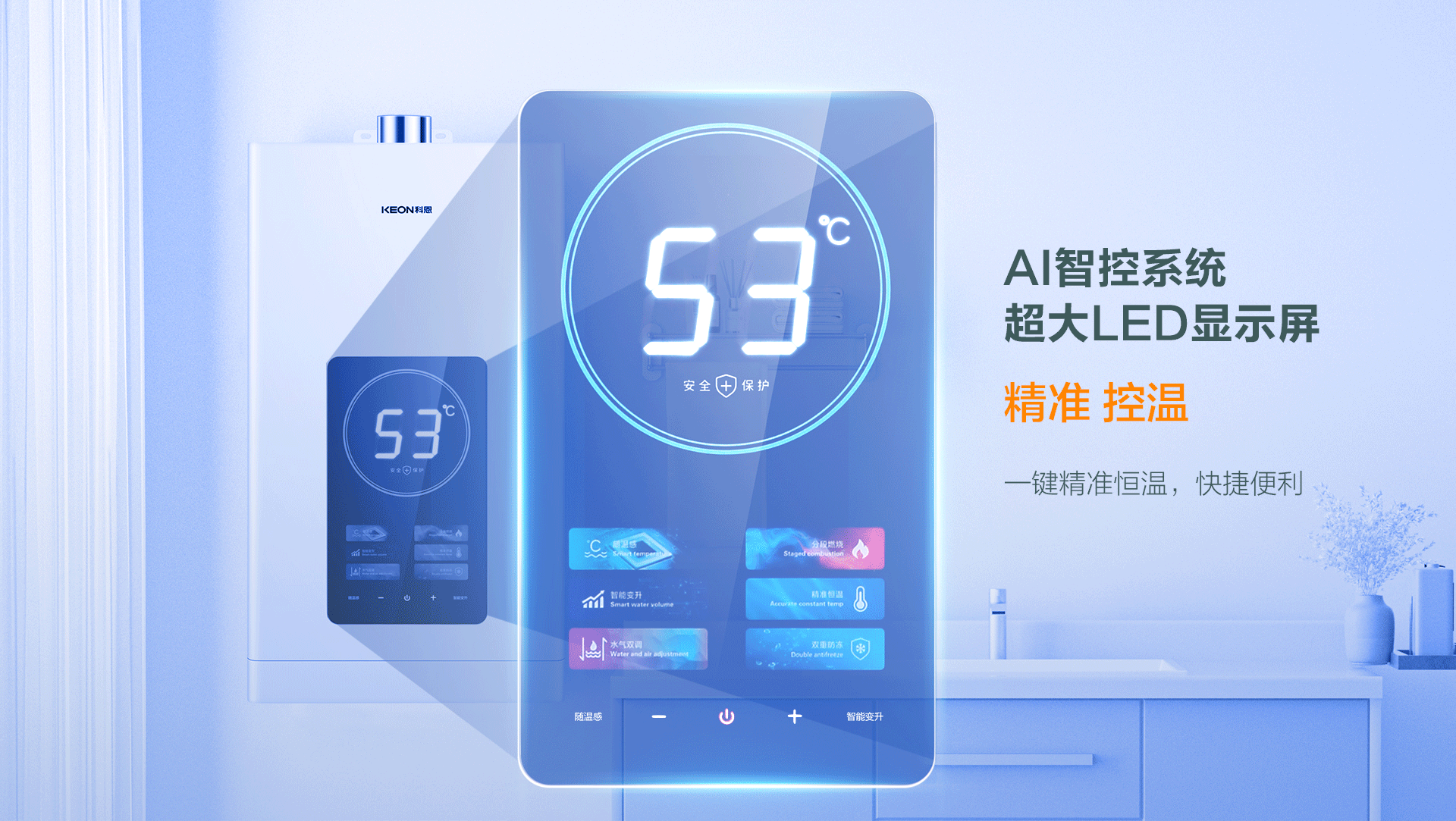 智能恒溫,告別等待:AI智控系統(tǒng),超大LED顯示屏,一體化機(jī)身,耐油污、抗氧化、防變色,日常打理更省心;動感屏顯設(shè)計(jì),美觀時尚,帶來無限視覺享受;一鍵精準(zhǔn)恒溫,操作更簡單明了;內(nèi)置燃?xì)夥€(wěn)壓裝置和水控全自動系統(tǒng),保證燃燒供熱和出水量的穩(wěn)定,熱水零等待,即開即來。