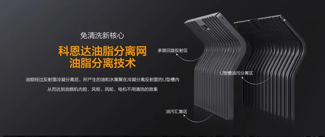 科恩免清洗煙機獨創科恩達油脂分離網,采用易潔太空壓鑄鋁材,經過酸洗-噴砂工藝加之特氟龍噴涂最后高溫燒結,不僅不沾油、易清潔更好打理。在分離油煙的同時,還能阻燃阻熱!保障廚房安全!