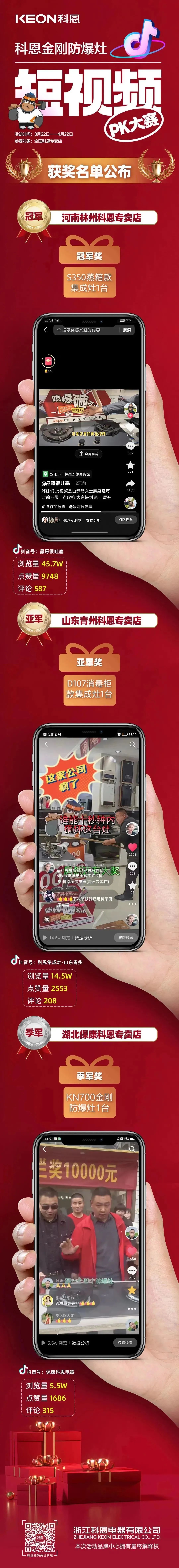 自防爆灶挑戰(zhàn)賽發(fā)布之日起,挑戰(zhàn)賽話題熱度每日以萬增加。最終河南林州專賣店以45.7萬瀏覽量摘下冠軍寶座。