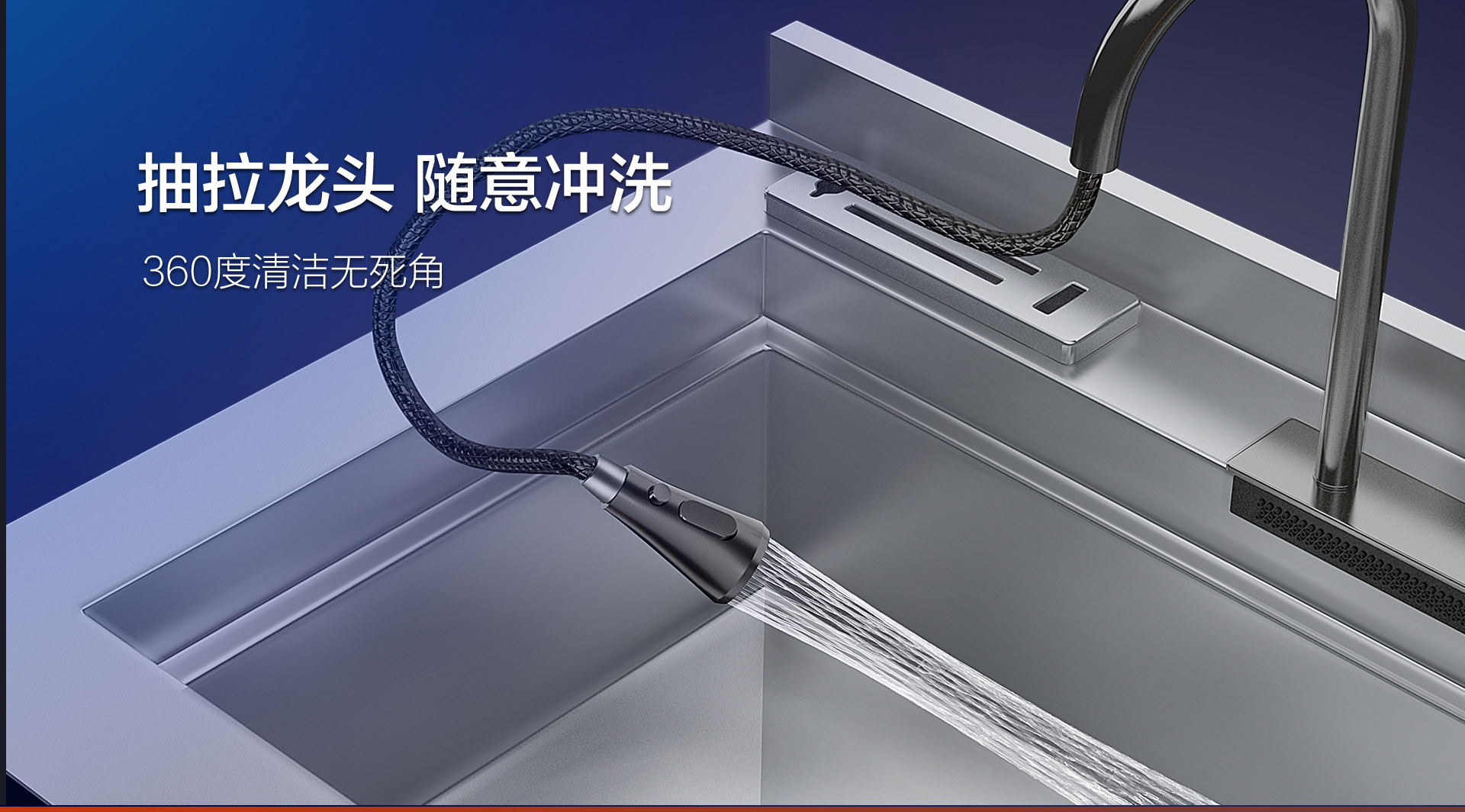 科恩X6L貼心設置抽拉式水龍頭,可實現360度無死角清洗。3種出水模式,滿足不同清洗需求!