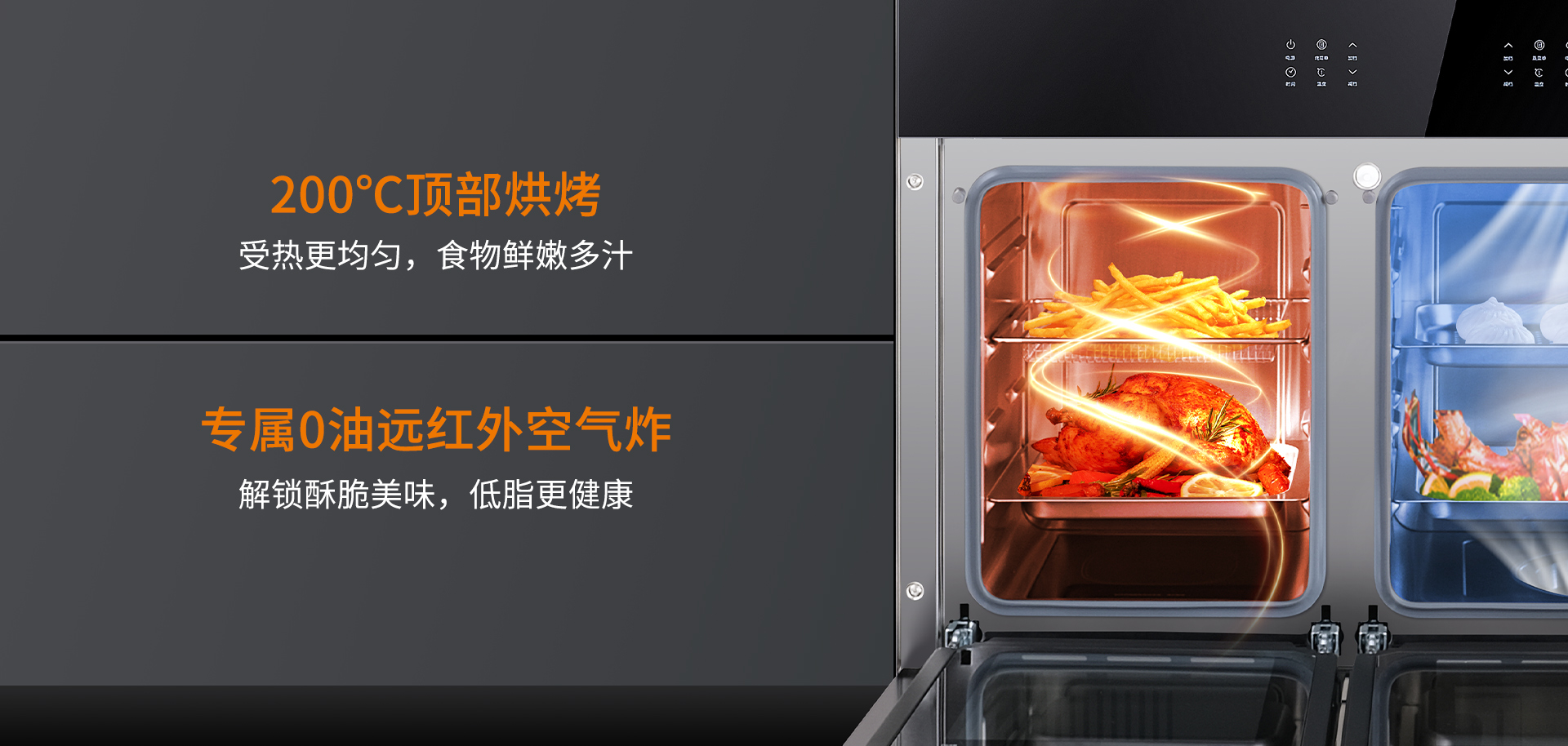 噴氣式4D立體蒸加上360°動態蒸汽內循環,讓食材方方面面、內外都均勻受熱,還原食材真鮮美味,讓美味輕松上桌。