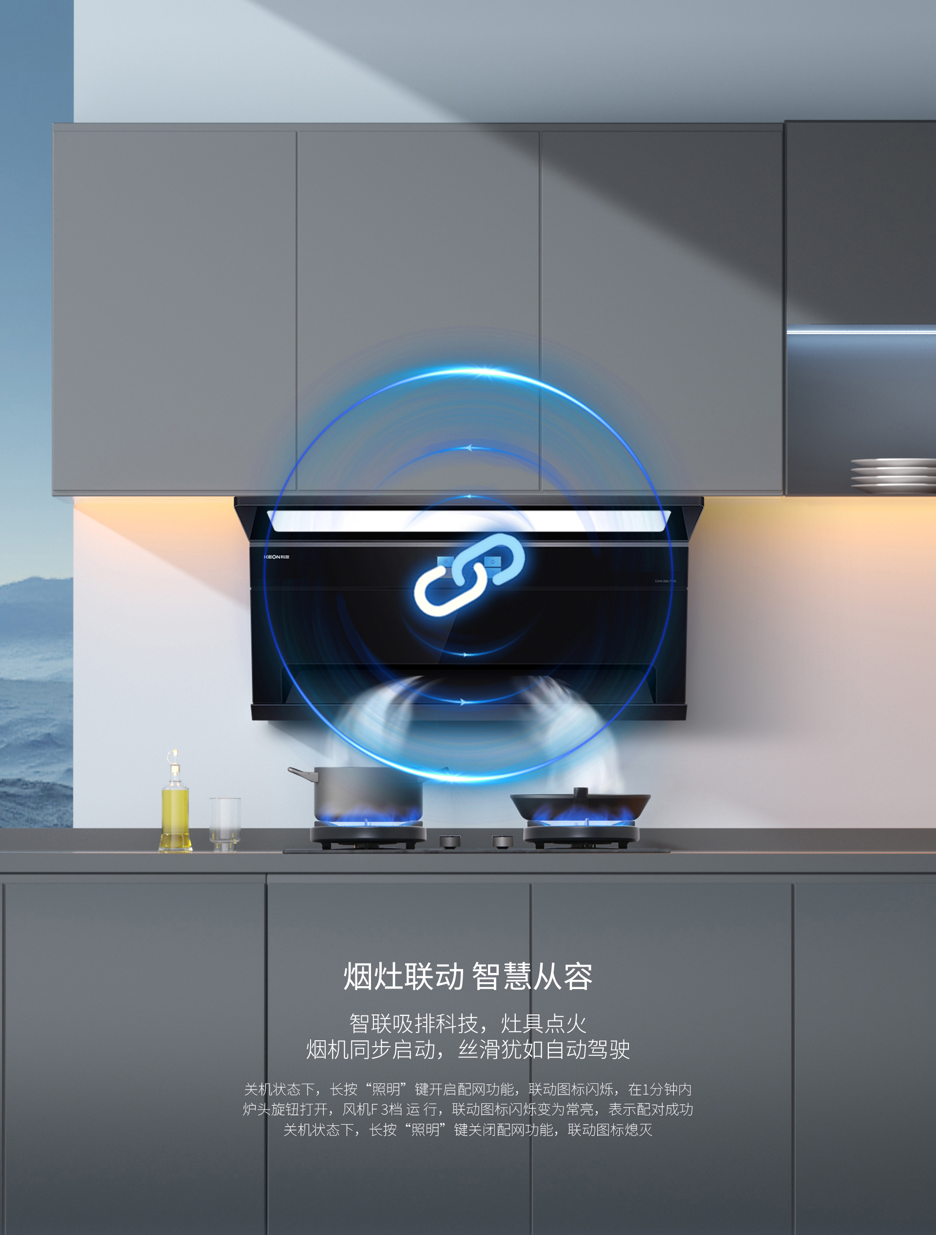 煙灶聯(lián)動的智聯(lián)吸排科技更是展現(xiàn)出了其智慧從容的一面。當(dāng)灶具點火的瞬間,煙機(jī)便同步啟動,整個過程絲滑順暢,猶如自動駕駛般智能。這種緊密的聯(lián)動配合,有效確保了在烹飪過程中產(chǎn)生的油煙能夠及時被吸排,讓廚房空氣時刻保持清新。