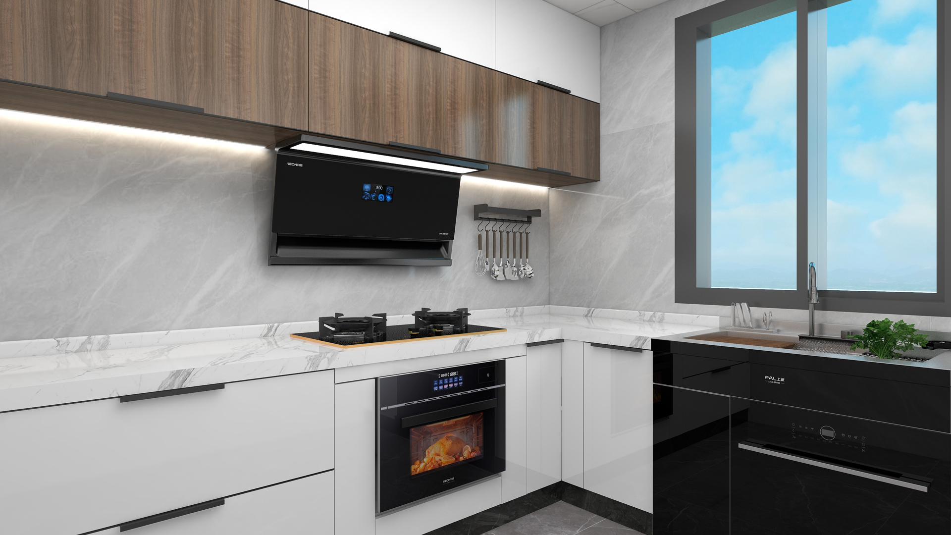 7270 煙機采用幻影黑面板,磨砂啞光質(zhì)感細膩柔和,不僅抗指紋耐刮擦,始終保持光潔如新,還能完美適配多種廚房裝修風格,為廚房增添時尚格調(diào)。2.5cm 纖薄機身,與櫥柜邊緣齊平,告別傳統(tǒng)煙機的笨重感,釋放更多空間,讓你自在顛勺,盡情享受烹飪樂趣,再也不用擔心碰頭。