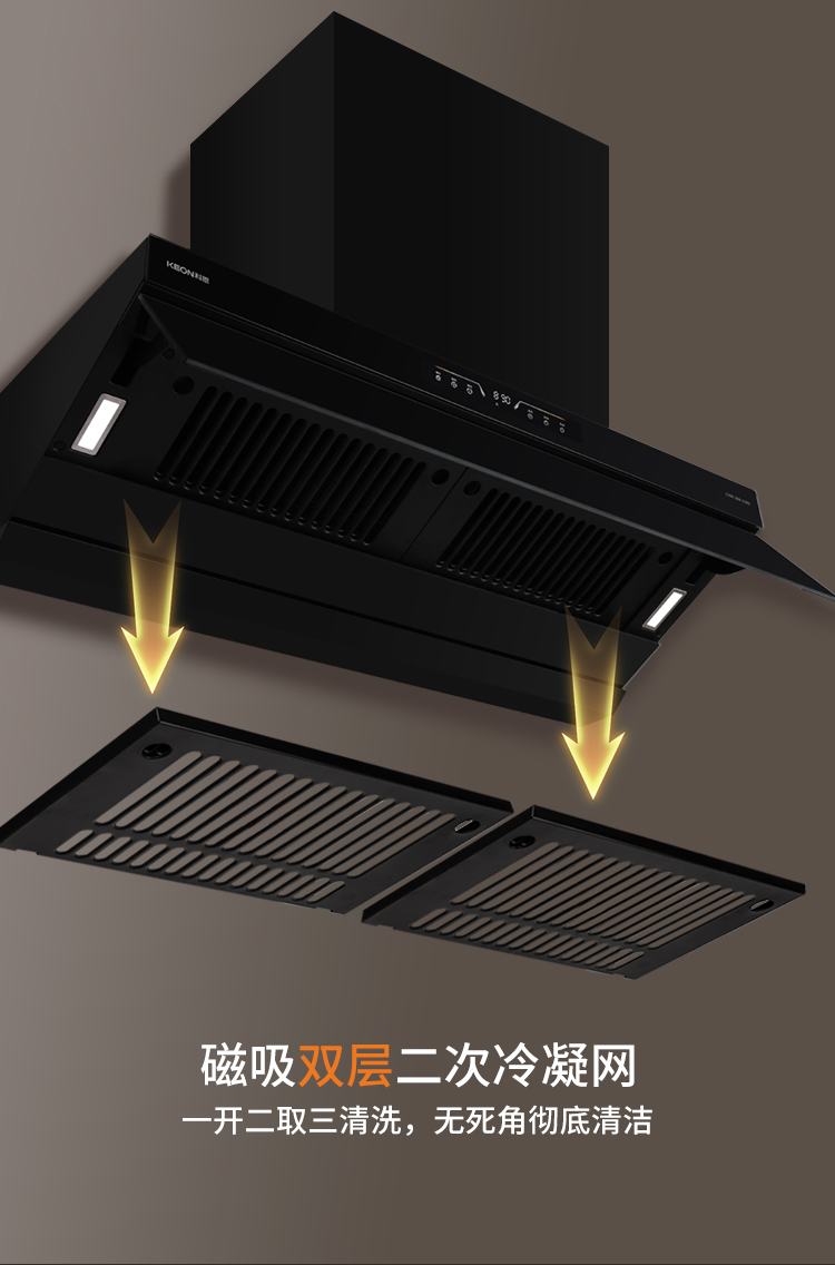 智控隨心潔凈無憂,揮手即控無需觸碰,遠離油污沾染,3+1檔精準控風,適配煲湯煎炒燉煮,2min延時凈吸,殘余油煙一網打盡,電熱自清潔快速溶解油污,磁吸雙層二次冷凝網,油網一開即取,一抹即凈,解放雙手,讓清潔如春風般輕松。