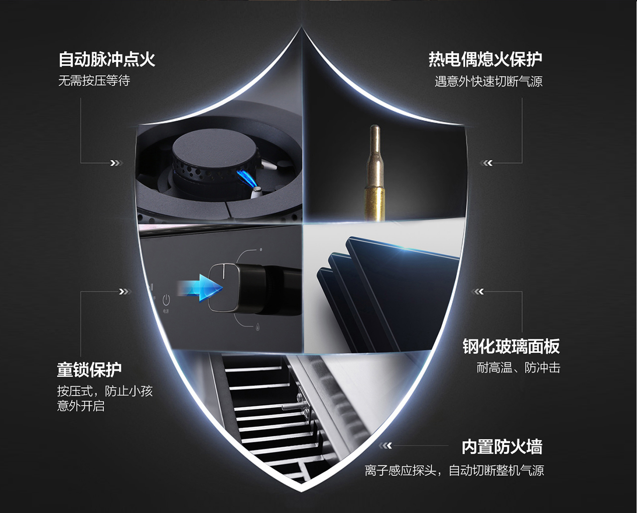 8MM加厚黑晶防爆鋼化玻璃灶臺面板,外觀時(shí)尚,易潔易打理。