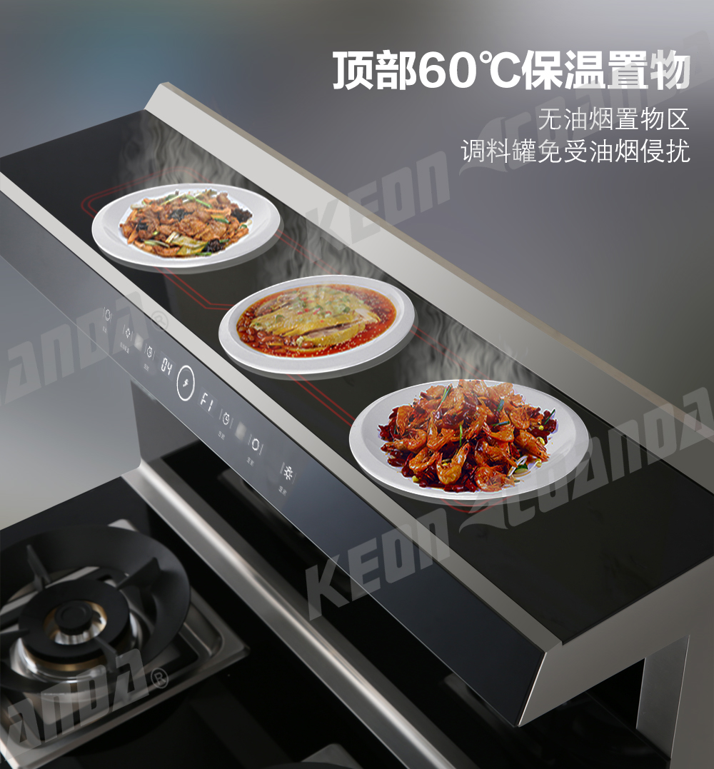 • 頂部60℃保溫置物功能,無油煙置物區,調料罐免受油煙侵擾