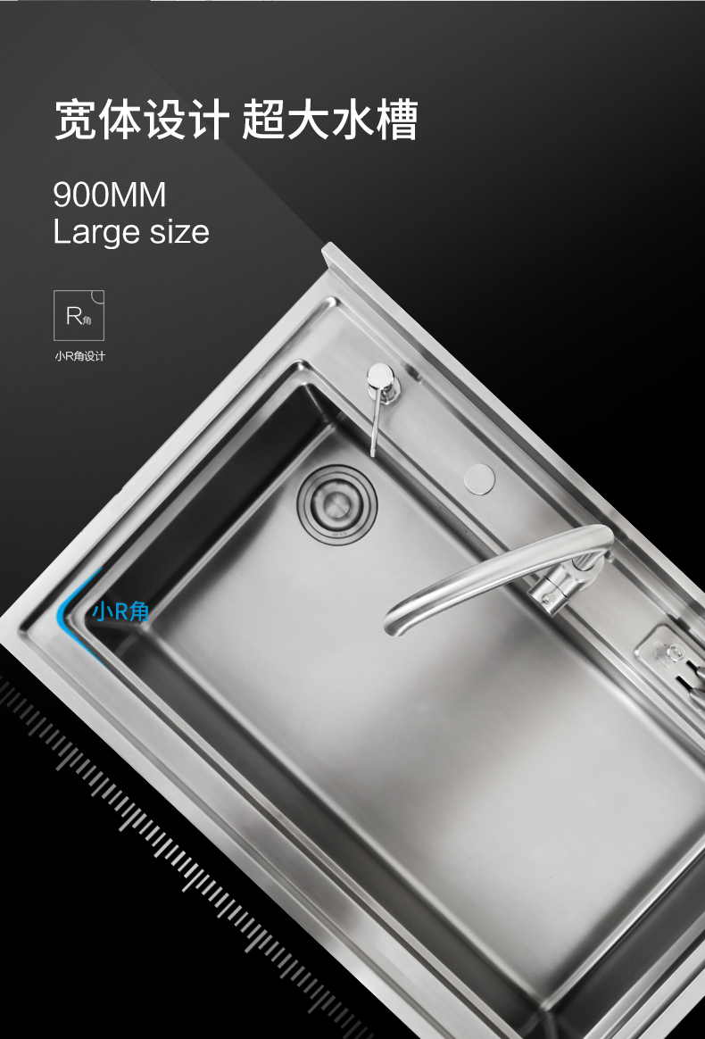 • 900MM寬體設計,超大水槽加寬加深