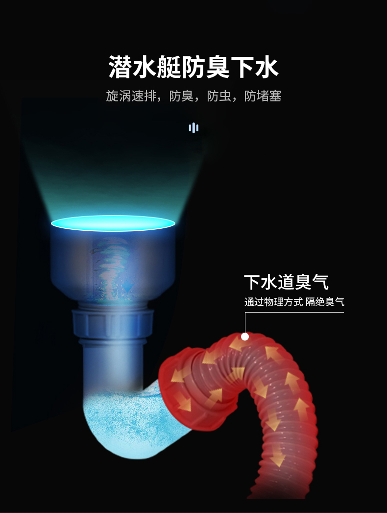 • ABS防臭下水器套裝設計,大直徑下水管