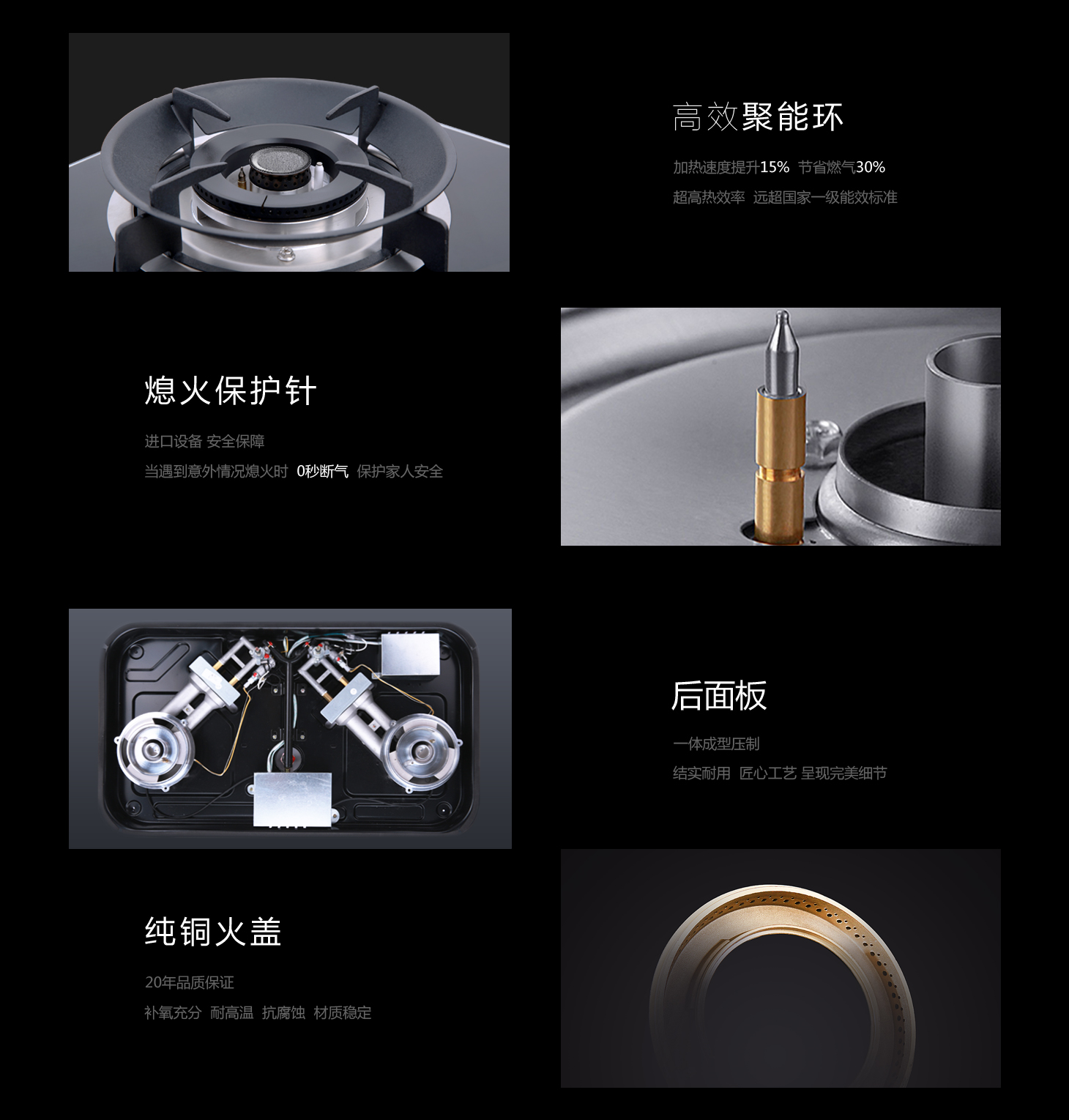 銅火蓋帶高熱效鑄鐵聚能環,熱效率高
