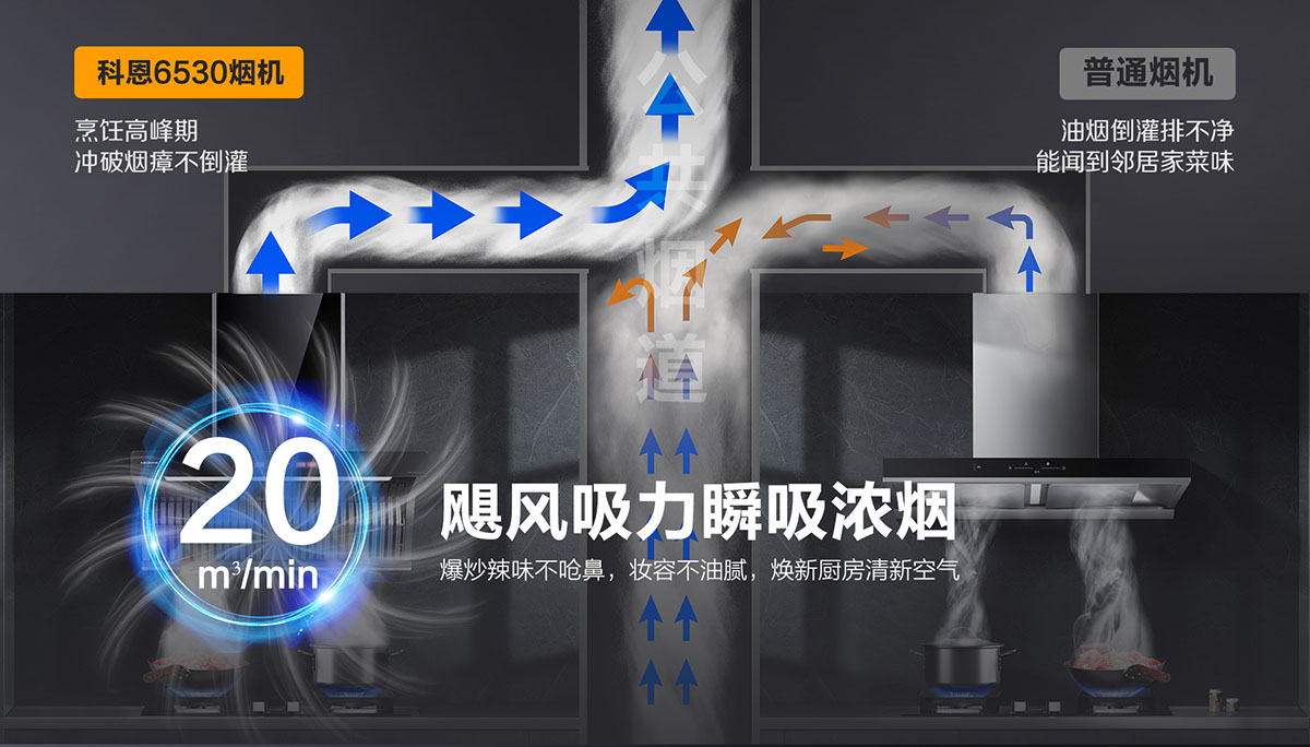 20m3/min颶風(fēng)吸力,爆炒不嗆鼻,煥新廚房更潔凈