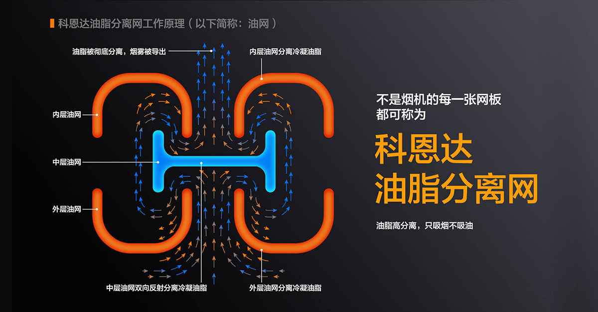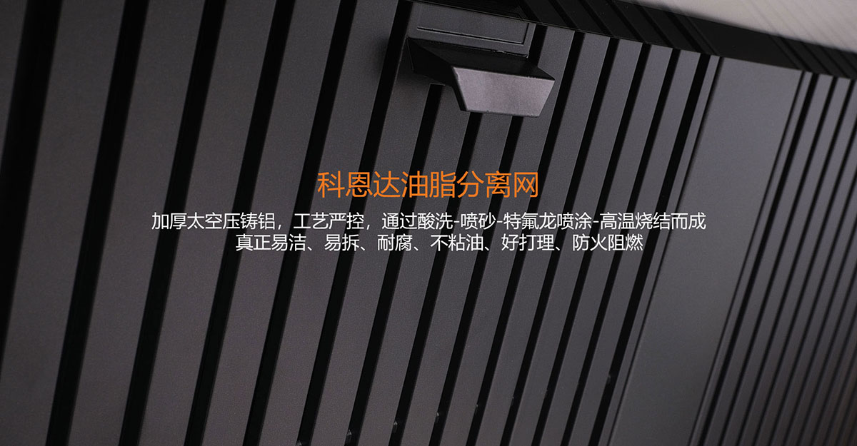- 科恩達(dá)油脂分離網(wǎng)特有的防火阻燃設(shè)計(jì),廚房省心更安全