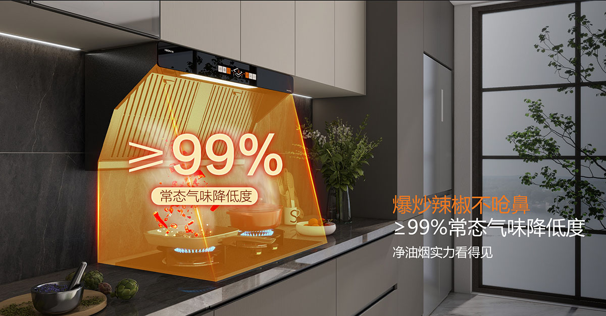 - 颶風(fēng)大吸力,≥99%常態(tài)氣味降低度,爆炒辣椒不嗆鼻