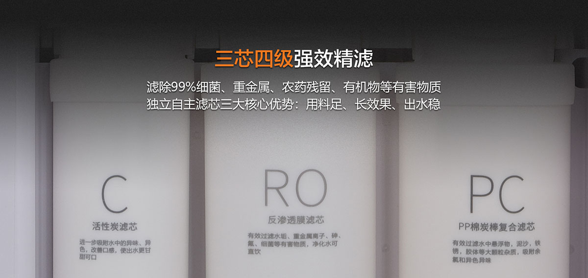 • 三芯四級(jí)強(qiáng)效精濾,濾除99%細(xì)菌重金屬