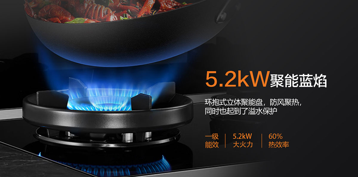 - 5.2kW大火力,左灶120min定時功能,多檔火力調(diào)節(jié)