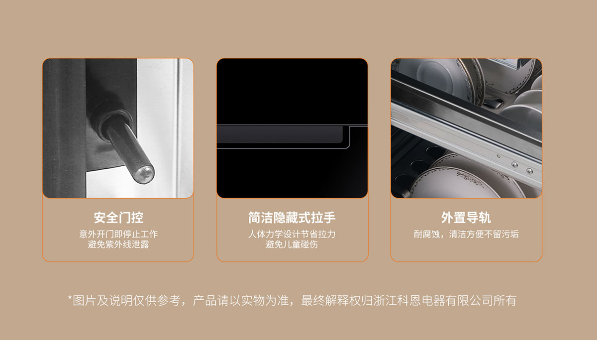 產品型號:ZTD120L-K51(炫彩屏內三抽款)產品名稱:科恩內三抽消毒柜