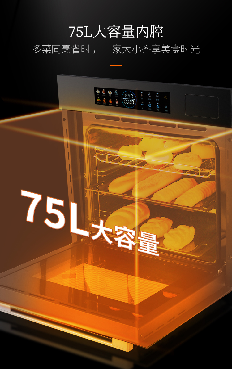75L大容量,可滿足多菜同時烹飪