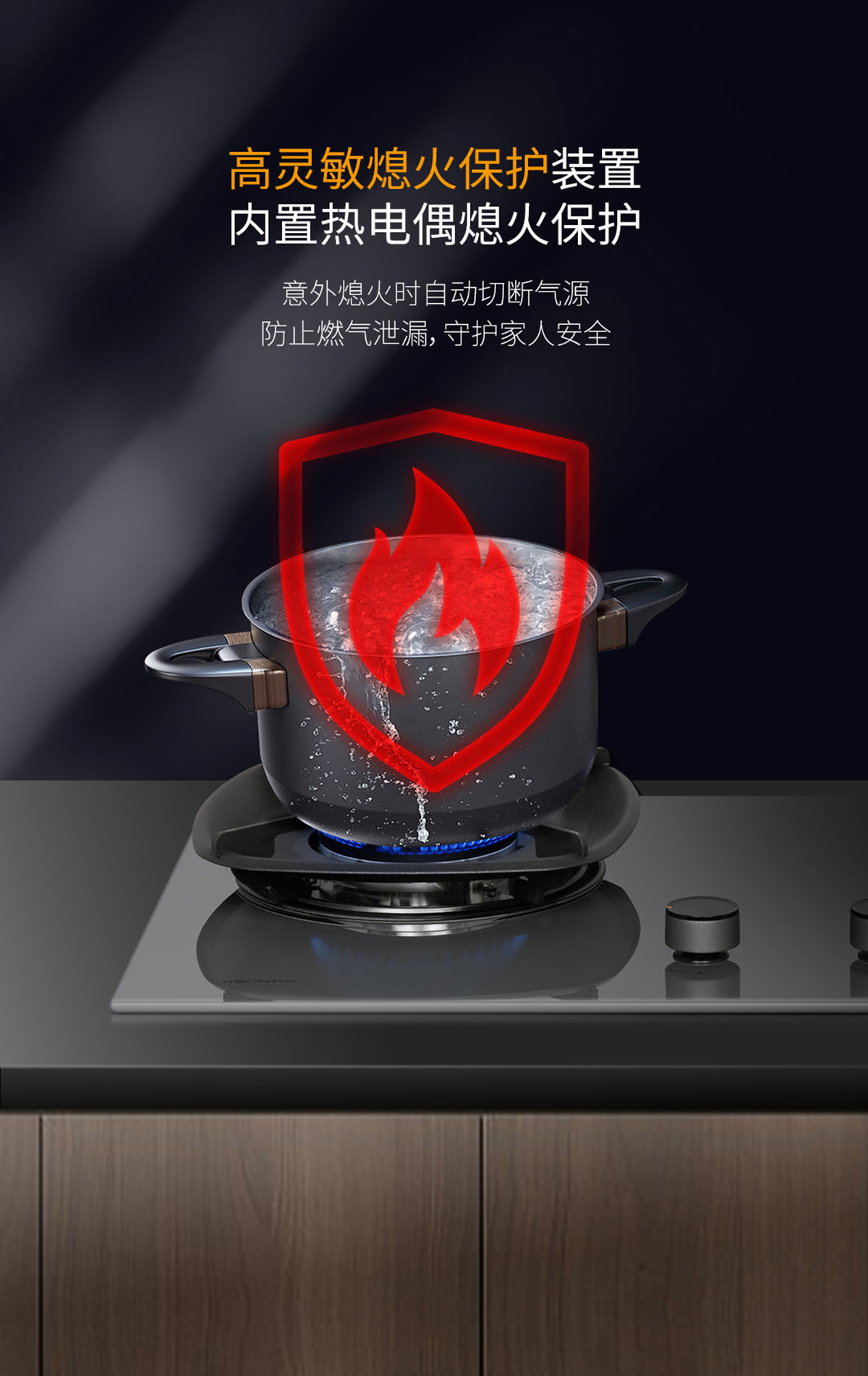 - 高靈敏熄火保護,防止燃氣泄漏,守護家人安全