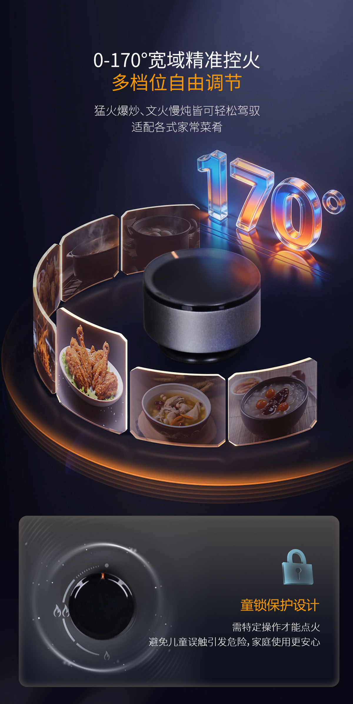 - 0-170°寬域精準控火,火力多檔位自由調節
